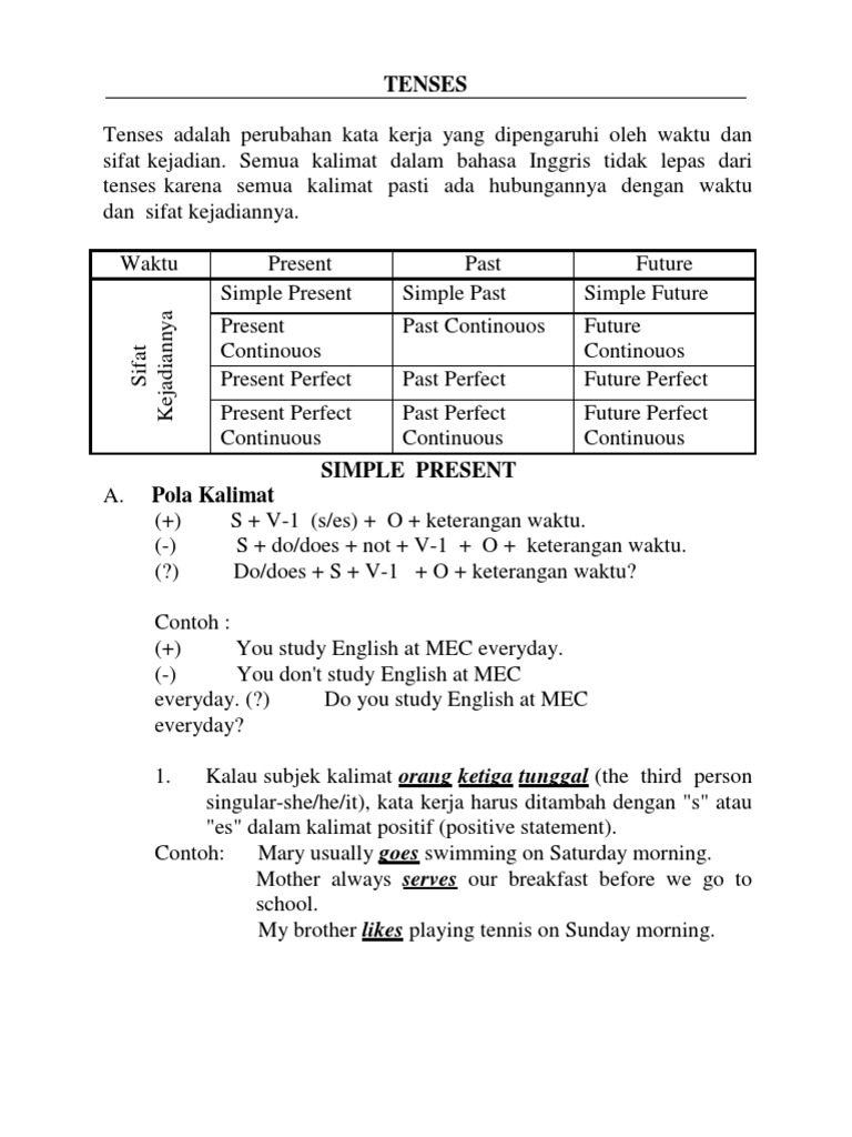 Belajar Tenses Bahasa Inggris Dengan Contohnya Macamateri