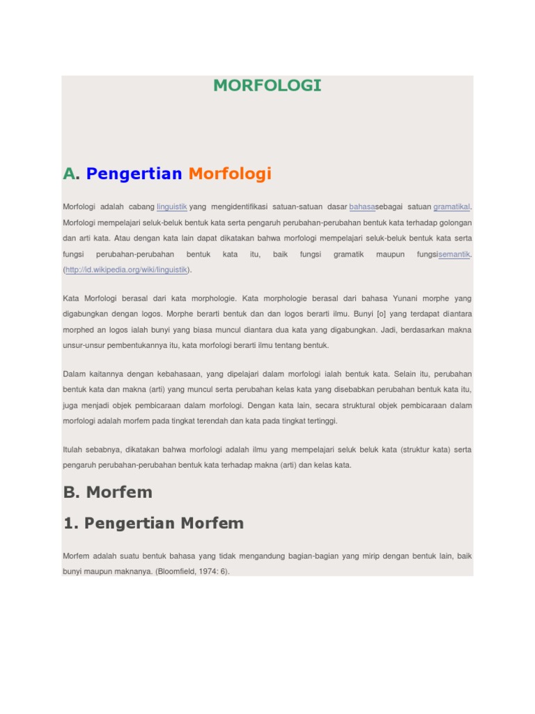 Contoh memperbesar di atas adalah satu kata yang terdiri atas tiga morfem yakni dua morfem terikat mem dan per serta satu morfem bebas besar. Disini akan berbeda arti yang terkandung di dalamnya. Fonem morfem dan kata. Perbedaan antara morfem dan kata morfem memiliki ciri terikat yaitu selalu merupakan bagian dari suatu kata.